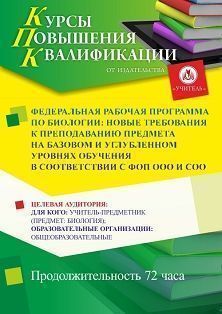 Федеральная рабочая программа по биологии: новые требования к преподаванию предмета на базовом и углубленном уровнях обучения в соответствии с ФОП ООО и СОО (72 ч.)