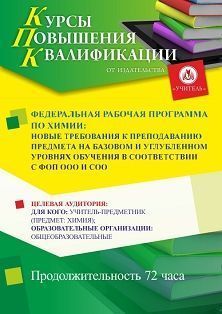 Федеральная рабочая программа по химии: новые требования к преподаванию предмета на базовом и углубленном уровнях обучения в соответствии с ФОП ООО и СОО (72 ч.)