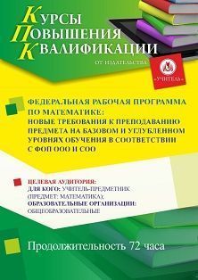 Федеральная рабочая программа по математике: новые требования к преподаванию предмета на базовом и углубленном уровнях обучения в соответствии с ФОП ООО и СОО (72 ч.)