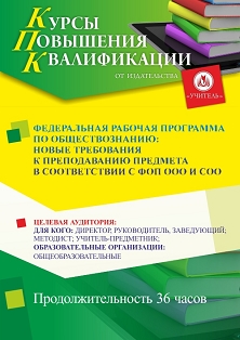 Федеральная рабочая программа по обществознанию: новые требования к преподаванию предмета в соответствии с ФОП ООО и СОО (36 ч.)