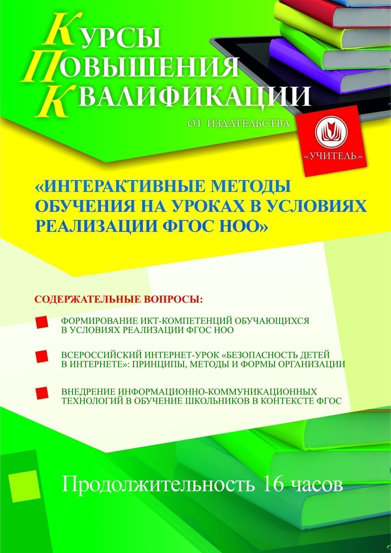 Курсы повышения квалификации адресованы учителям начальных классов и руководителям образовательных организаций и направлены на повышение их профессиональной компетентности в области современных образовательных технологий.