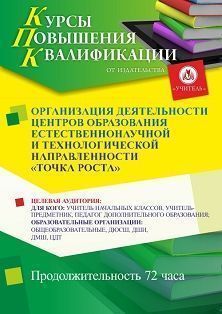 Организация деятельности Центров образования естественнонаучной и технологической направленностей Точка Роста (72 ч.)