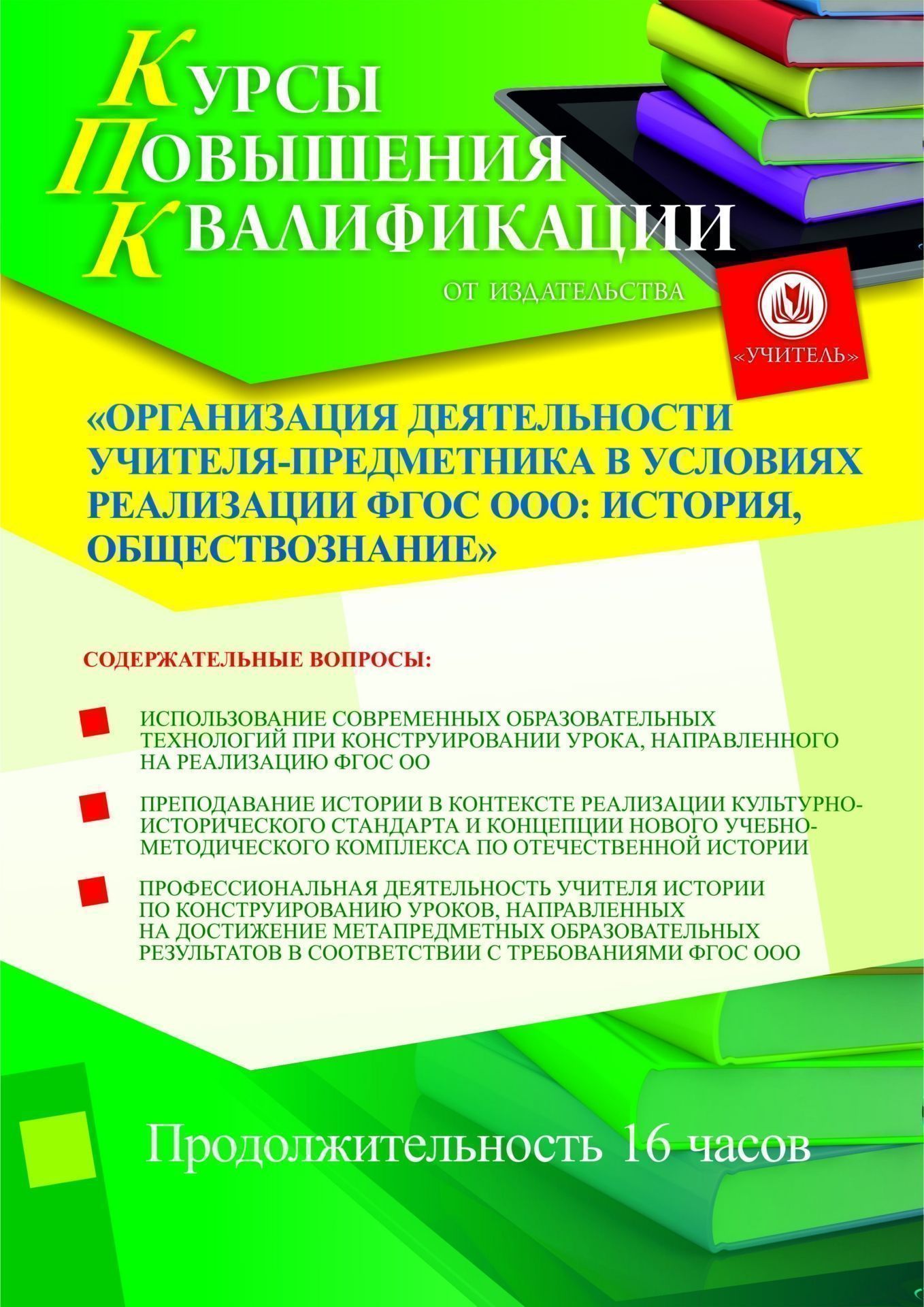 Организация деятельности учителя-предметника в условиях реализации ФГОС ООО: история, обществознание (16 ч.)