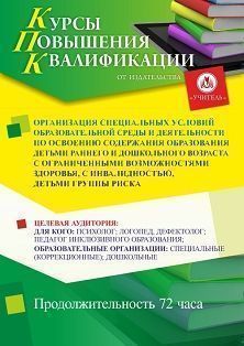 Организация специальных условий образовательной среды и деятельности по освоению содержания образования детьми раннего и дошкольного возраста с ограниченными возможностями здоровья, с инвалидностью, детьми группы риска (72 ч.)