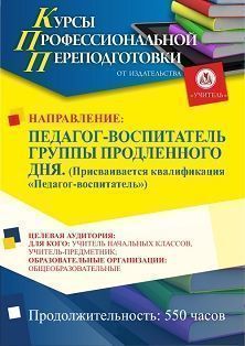 Педагог-воспитатель группы продленного дня. Присваивается квалификация Педагог-воспитатель (550 ч.)