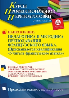 Педагогика и методика преподавания французского языка. Присваивается квалификация Учитель французского языка (550 ч.)