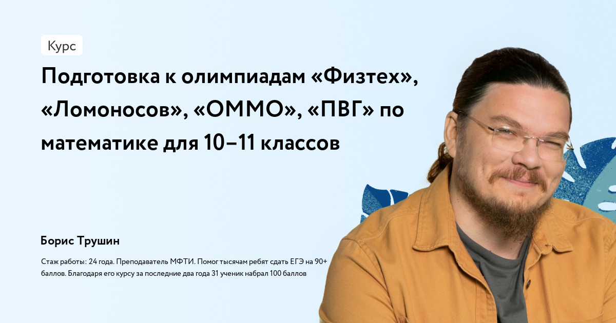 Курс подойдет тем, кто освоил школьную программу и хочет принять участие в профильных олимпиадах по математике, которые дают льготы при поступлении в вузы. Курс поможет подготовиться к таким олимпиадам, как «Физтех», «Ломоносов», «Покори Воробьевы горы», «ОММО» и др. перечневым олимпиадам.