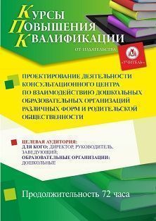 Проектирование деятельности консультационного центра по взаимодействию дошкольных образовательных организаций различных форм и родительской общественности (72 ч.)