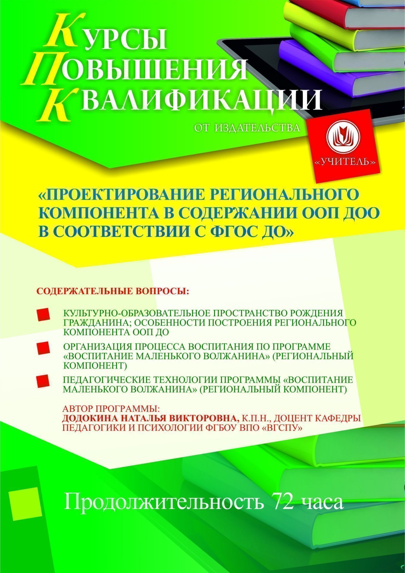 Проектирование регионального компонента в содержании ООП ДОО в соответствии с ФГОС ДО (72 ч.)
