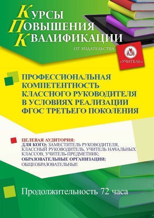 Профессиональная компетентность классного руководителя в условиях реализации ФГОС третьего поколения (72 ч.)