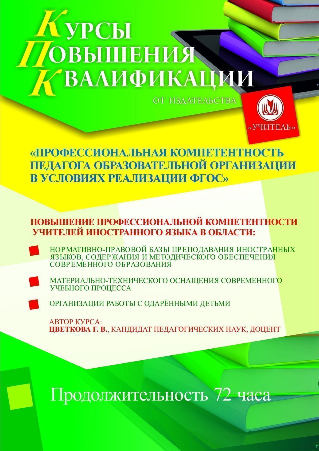 Профессиональная компетентность педагога образовательной организации в условиях реализации ФГОС (для учителей иностранного языка) (72 ч.)