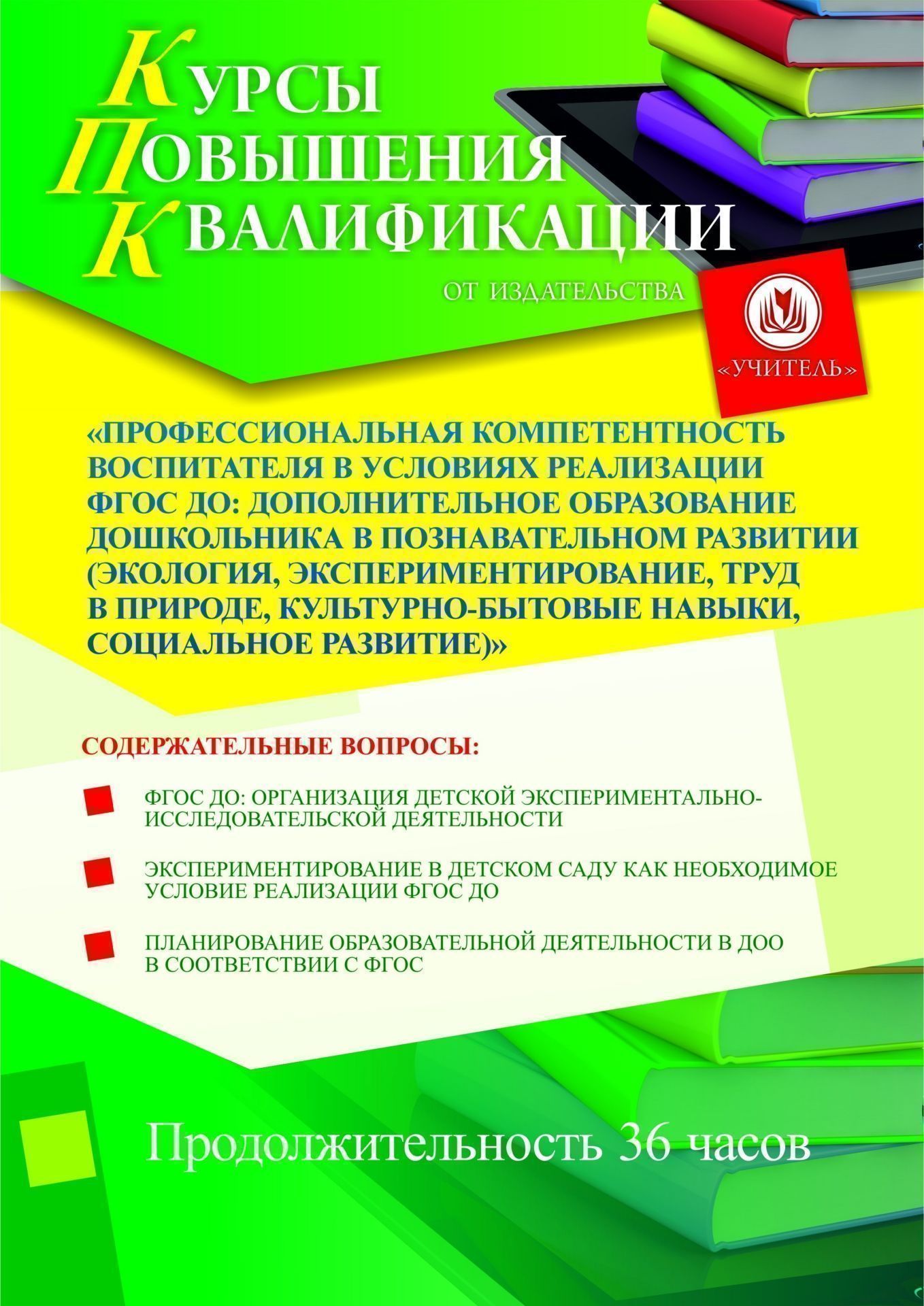 Профессиональная компетентность воспитателя в условиях реализации ФГОС ДО: дополнительное образование дошкольника в познавательном развитии (экология, экспериментирование, труд в природе, культурно-бытовые навыки, социальное развитие) (36 ч.)