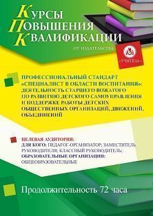 Профессиональный стандарт Специалист в области воспитания: деятельность старшего вожатого по развитию детского самоуправления и поддержке работы детских общественных организаций, движений, объединений (72 ч.)