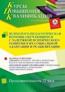 Психолого-педагогическая помощь обучающимся с задержкой психического развития в их социальной адаптации и реабилитации (72 ч.)