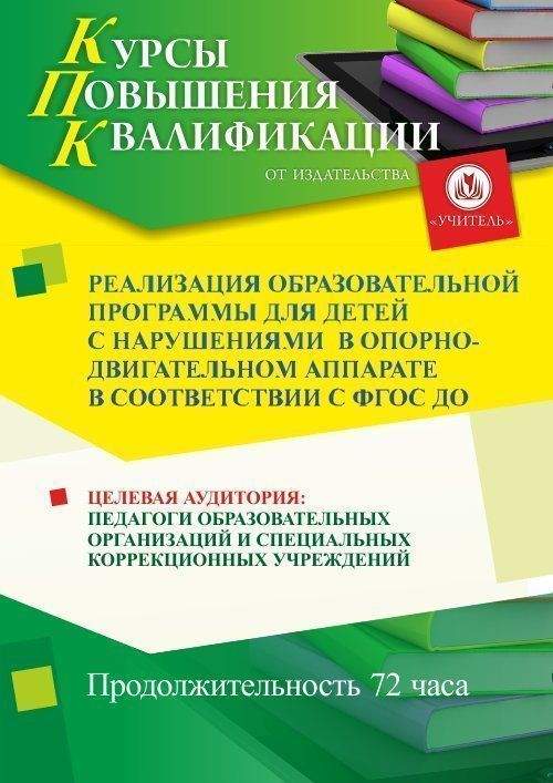 Реализация образовательной программы для детей с нарушениями в опорно-двигательном аппарате в соответствии с ФГОС ДО (72 ч.)