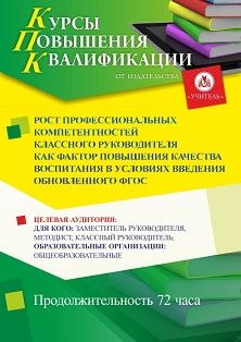 Рост профессиональных компетентностей классного руководителя как фактор повышения качества воспитания в условиях введения обновленного ФГОС (72 ч.)