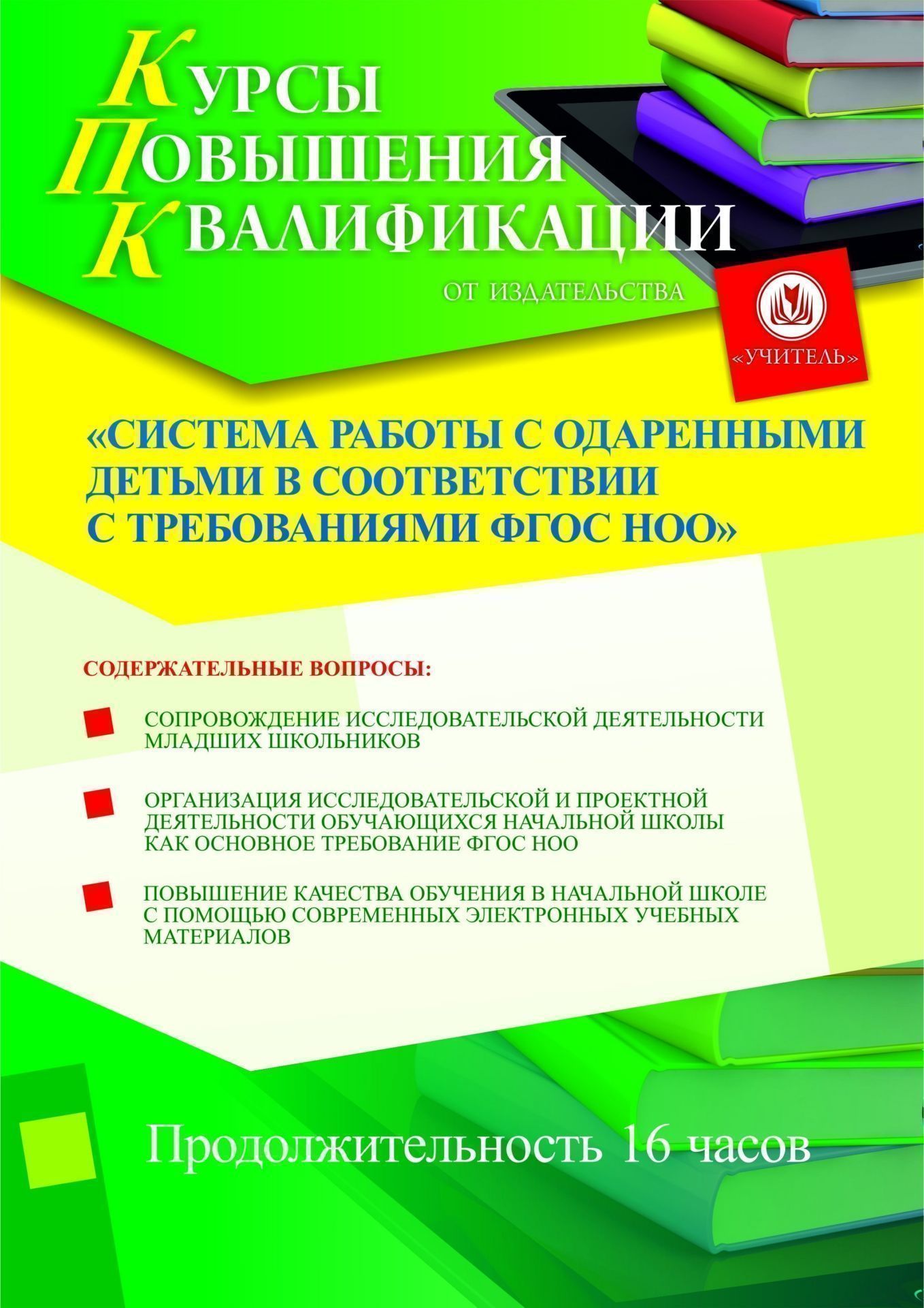 Курсы повышения квалификации адресованы учителям начальных классов и руководителям образовательных организаций и направлены на повышение их профессиональной компетентности в области современных образовательных технологий.