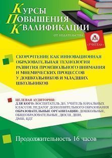 Скорочтение как инновационная образовательная технология развития произвольного внимания и мнемических процессов у дошкольников и младших школьников (16 ч.)