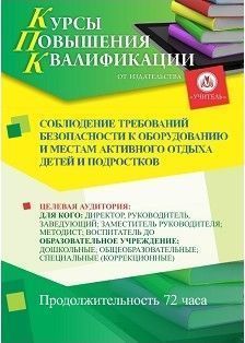 Соблюдение требований безопасности к оборудованию и местам активного отдыха детей и подростков (72 ч.)