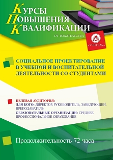 Социальное проектирование в учебной и воспитательной деятельности со студентами (72 ч.)