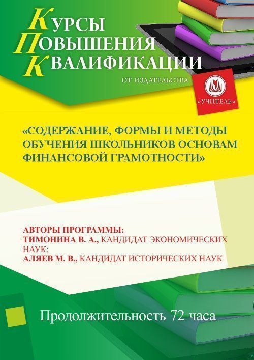 Содержание, формы и методы обучения школьников основам финансовой грамотности (72 ч.)