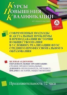 Современные подходы и актуальные проблемы в преподавании истории и обществознания в условиях реализации ФГОС среднего профессионального образования (72 ч.)