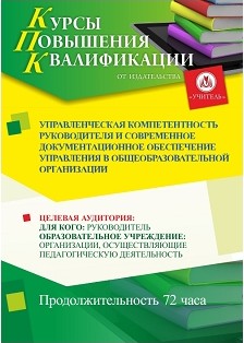 Управленческая компетентность руководителя и современное документационное обеспечение управления в общеобразовательной организации (72 ч.)