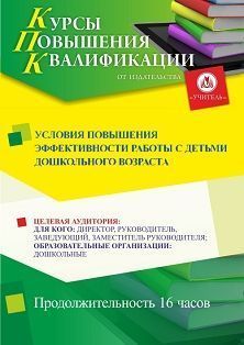 Условия повышения эффективности работы с детьми дошкольного возраста (16 ч.)