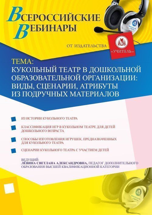 Приглашаем методистов, педагогов дополнительного образования, воспитателей принять участие в offline-вебинаре «Кукольный театр в дошкольной образовательной организации: виды, сценарии, атрибуты из подручных материалов».