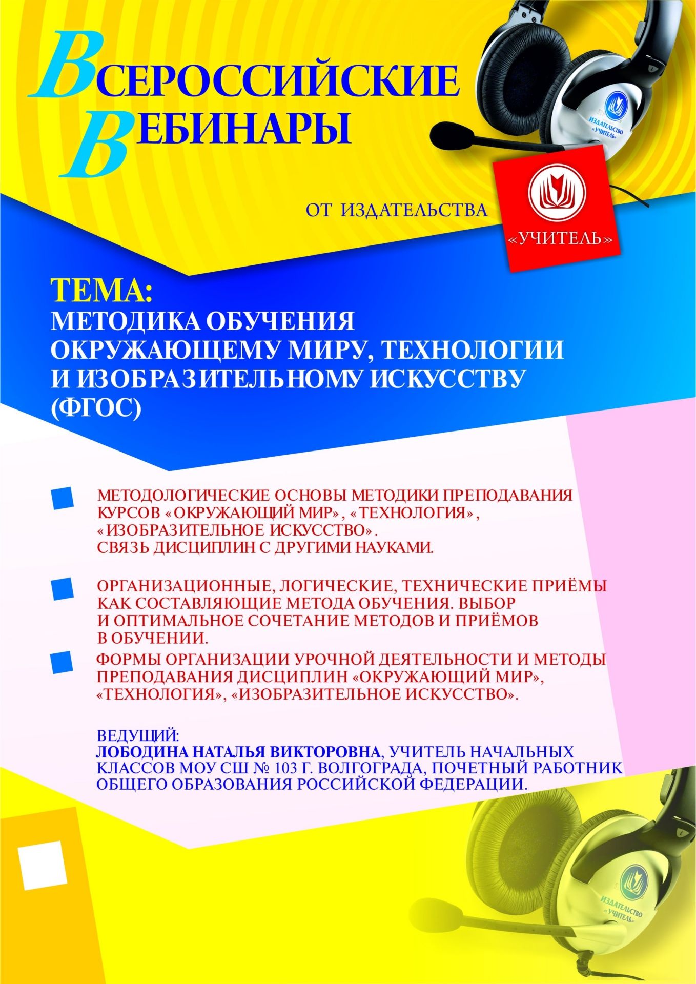 Приглашаем учителей начальных классов, заместителей руководителя по УМР, руководителей методических объединений принять участие в offline-вебинаре «Методика обучения окружающему миру, технологии и изобразительному искусству (ФГОС)».