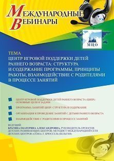 Международный вебинар Центр игровой поддержки детей раннего возраста: структура и содержание программы, принципы работы, взаимодействие с родителями в процессе занятий