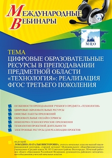 Международный вебинар Цифровые образовательные ресурсы в преподавании предметной области “Технология”: реализация ФГОС третьего поколения