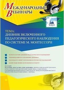Международный вебинар "Дневник включенного педагогического наблюдения по системе М. Монтессори"