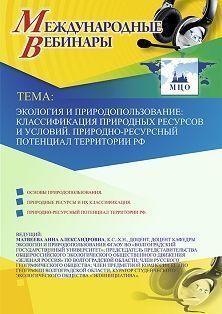 Международный вебинар Экология и природопользование: классификация природных ресурсов и условий. Природно-ресурсный потенциал территории РФ