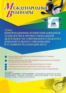 Международный вебинар Информационно-коммуникационные технологии в профессиональной деятельности современного педагога дополнительного образования в условиях реализации ФГОС