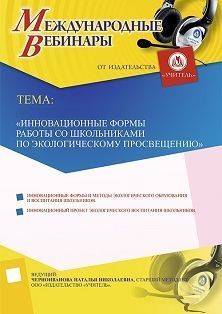 Международный вебинар Инновационные формы работы со школьниками по экологическому просвещению