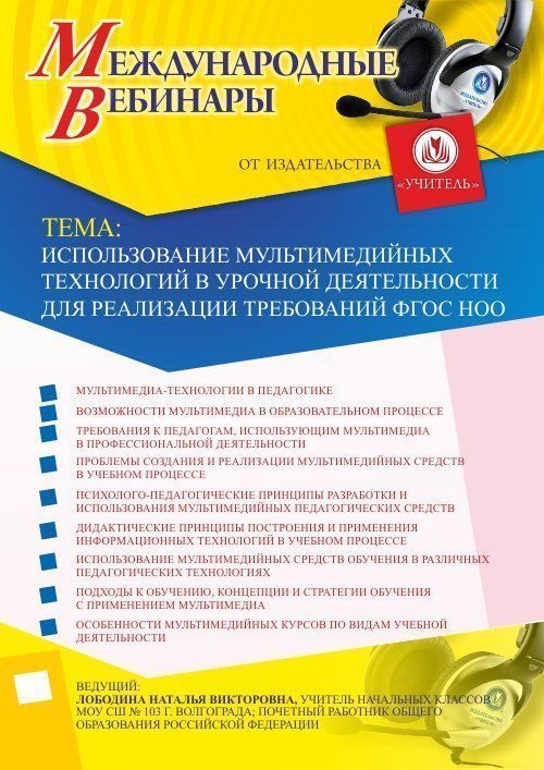 Международный вебинар "Использование мультимедийных технологий в урочной деятельности для реализации требований ФГОС НОО"