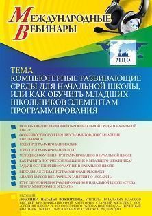 Международный вебинар Компьютерные развивающие среды для начальной школы, или Как обучить младших школьников элементам программирования