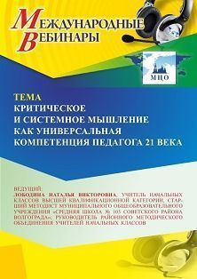 Международный вебинар Критическое и системное мышление как универсальная компетенция педагога 21 века
