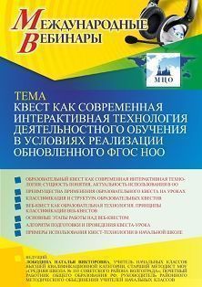 Международный вебинар Квест как современная интерактивная технология деятельностного обучения в условиях реализации обновленного ФГОС НОО