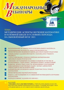 Международный вебинар Методические аспекты обучения математике в основной школе в условиях перехода на обновлённый ФГОС 2021