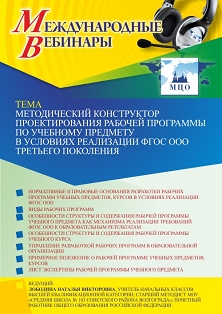 Международный вебинар Методический конструктор проектирования рабочей программы по учебному предмету в условиях реализации ФГОС ООО третьего поколения