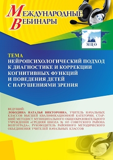 Международный вебинар Нейропсихологический подход к диагностике и коррекции когнитивных функций и поведения детей с нарушениями зрения