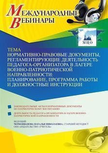 Международный вебинар Нормативно-правовые документы, регламентирующие деятельность педагога-организатора в лагере военно-патриотической направленности: планирование, программа работы и должностные инструкции