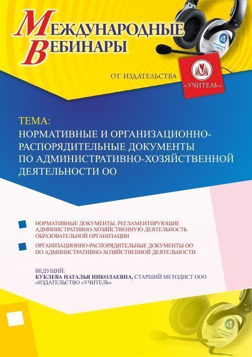 Международный вебинар "Нормативные и организационно-распорядительные документы по административно-хозяйственной деятельности ОО"