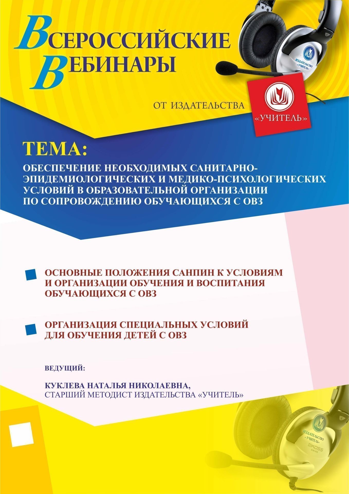 Международный вебинар Обеспечение необходимых санитарно-эпидемиологических и медико-психологических условий в образовательной организации по сопровождению обучающихся с ОВЗ