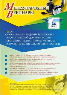 Международный вебинар "Оформление и ведение психолого-педагогической документации: планы работы, протоколы, журналы, психологические заключения и отчеты"