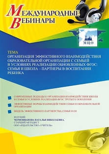 Международный вебинар Организация эффективного взаимодействия образовательной организации с семьей в условиях реализации обновленных ФГОС: семья и школа – партнеры в воспитании ребенка