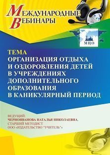 Международный вебинар Организация отдыха и оздоровления детей в учреждениях дополнительного образования в каникулярный период