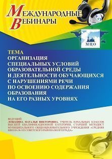 Международный вебинар Организация специальных условий образовательной среды и деятельности обучающихся с нарушениями речи по освоению содержания образования на его разных уровнях